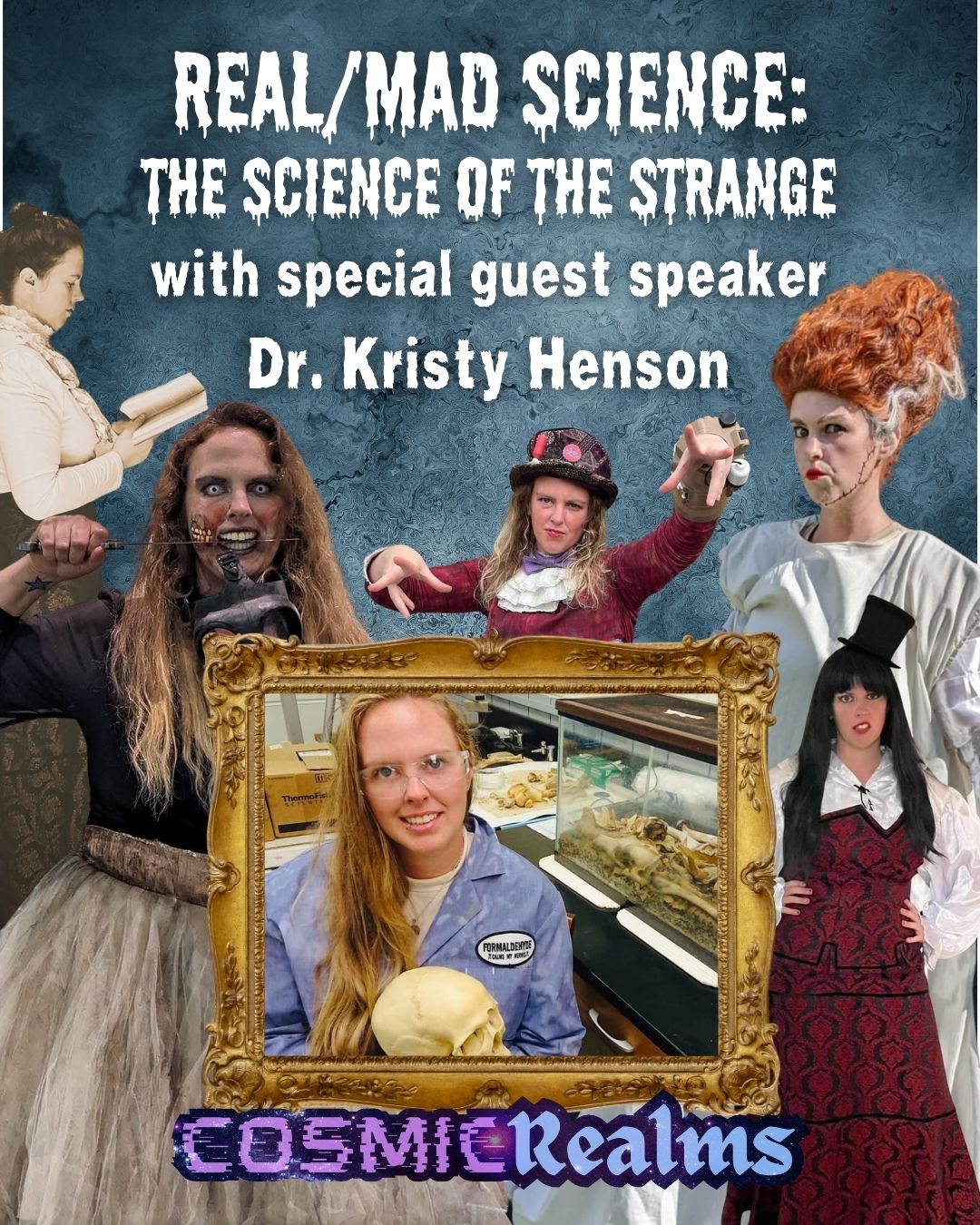 We are thrilled to announce special guest Dr. Kristy Henson, forensic anthropologist and a founder of Dr. Jekyll's Institute of Monster Studies, during Sunday of Cosmic Realms!